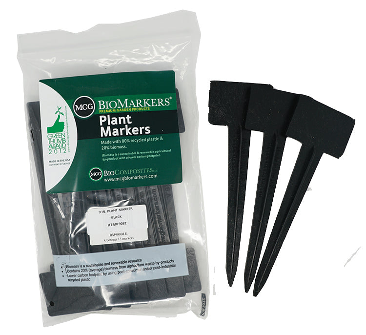 Great for the eco-conscious home gardener with a small- or large-scale garden, these 9-inch colored plant markers are made with 80% recycled plastic and 20% biomass from agriculture waste byproducts.