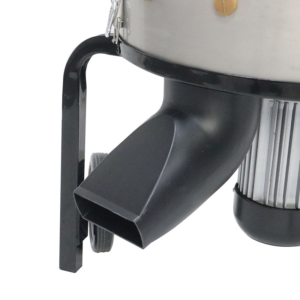The fastest and easiest way to remove feathers from meat birds, our electric Poultry Plucker uses a rotating base and 20" drum lined with 98 rubber fingers that pluck feathers without damaging skin and flesh. In 15 to 20 seconds, properly scalded birds are feather-free and ready for roasting or freezing. The 20" diameter stainless steel drum holds 1-2 chickens and detaches for fast cleanup. The angled chute discharges feathers away from the motor to prolong its life, and the integrated water system with on/off valve frees up hands and conserves water. (Water hose not included.) On/off switch is conveniently placed on the handle. Large wheels roll easily over grass and gravel.