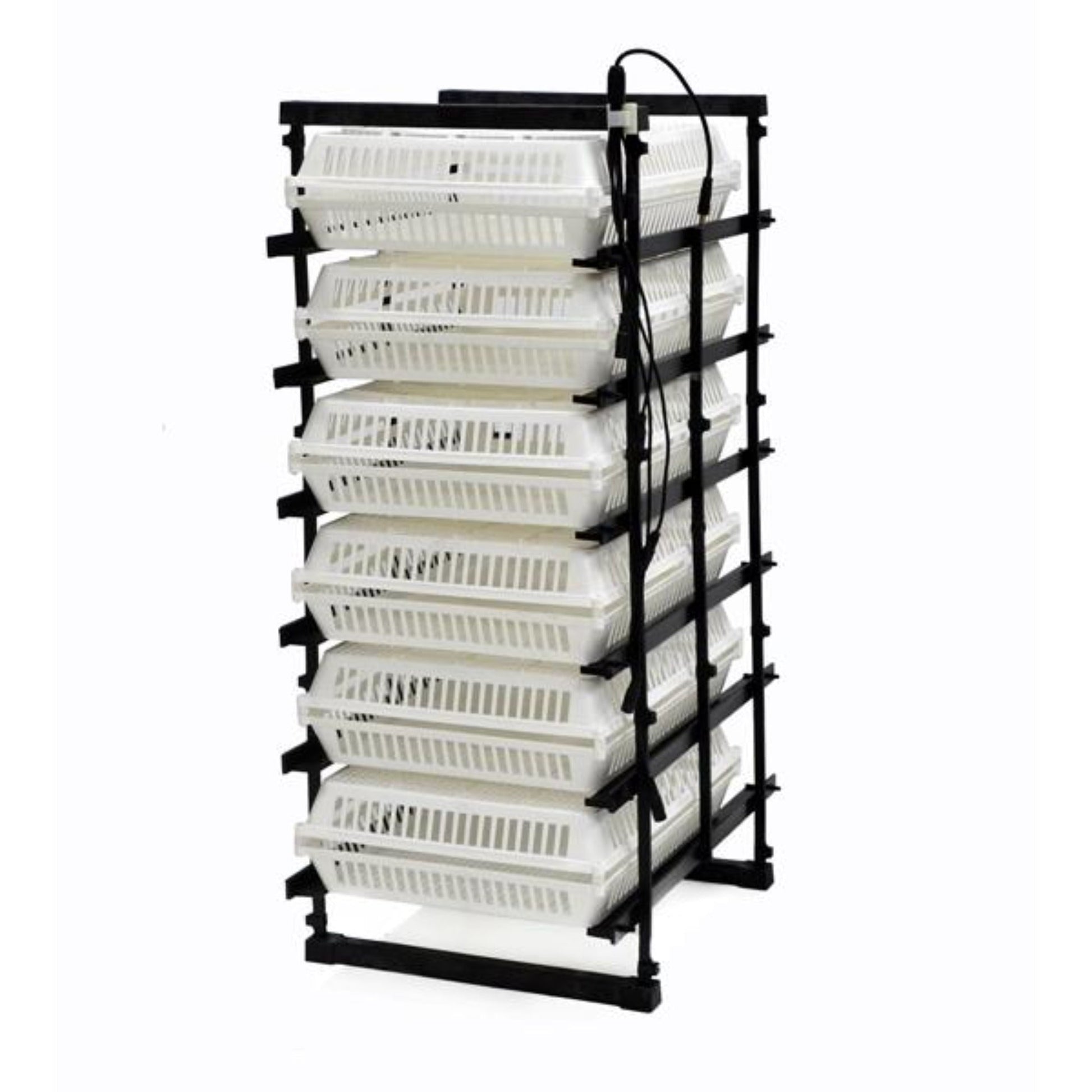 Each egg turner level holds a total of six modular standard egg racks which allow for any sized egg from partridge to duck. Concerned about hatch rates? Our turners are vibration-free to reduce any stress on the egg. Why do you need automatic egg turners? During incubation, eggs must be turned several times a day to prevent the yolk from settling on one side or the other.