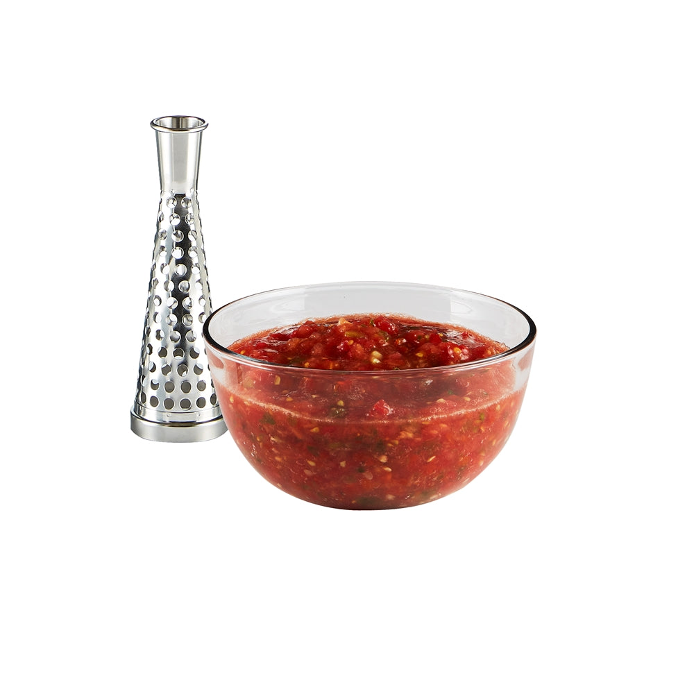 The large capacity hopper holds up to one gallon of produce. Three stainless steel straining screens are included and provide you an array of straining options: tomato/berry (one millimeter), pumpkin (three millimeter), and salsa (six millimeter).