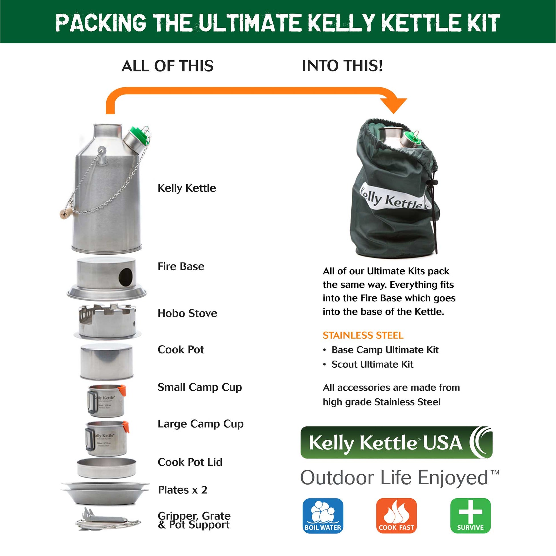 This Ultimate 'Scout' Kit is the best camping kettle for small groups or families, Car Camping, Fun Family Picnics, Scouts, Fishing, Bushcraft & Outdoor Education, Hunting, Emergency Preparedness & Off-Grid Survival Kit. Kelly Kettle Ultimate Kits are absolutely the best value when purchasing Kelly Kettle products!