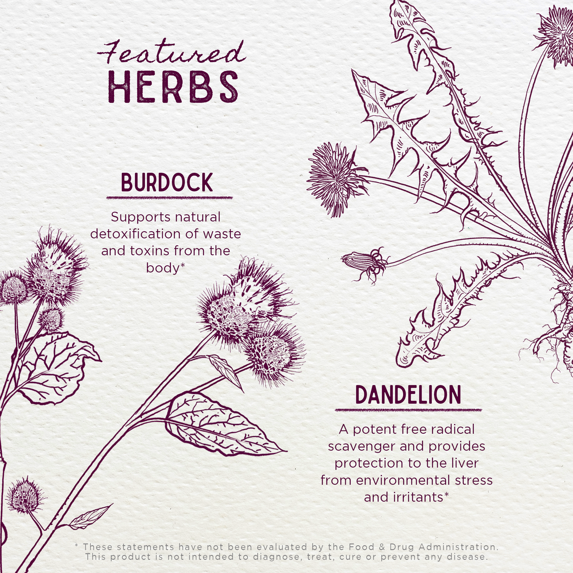 - Burdock root: Arctium lappa is a powerhouse of nutrients that acts as a free radical scavenger, helping to support the body's natural balance and homeostasis. Burdock may help support the body's natural cleansing processes and waste elimination. It supports hormonal balance throughout natural cycles, making it valuable herbal support during times of hormonal transition such as menopause.