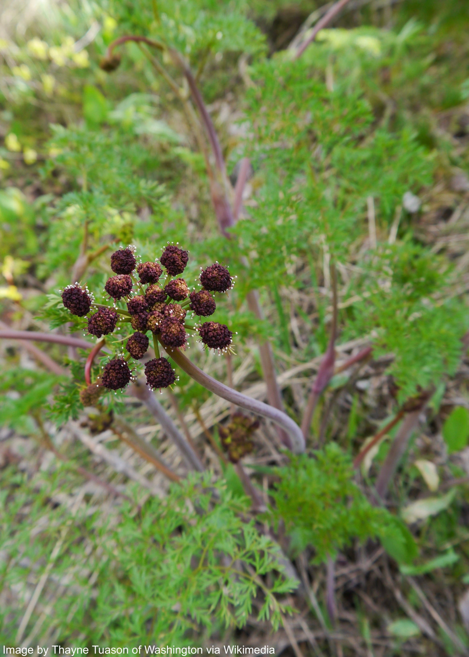 Known by the titles ‘Fernleaf Biscuitroot’ and ‘Desert Parsley,’ Lomatium is a perennial native to western North America. It is often found in high deserts, and its thick taproot allows the plant to withstand drought conditions, browsing, and wildfire. The first part of this plant’s name, ‘loma,’ is Greek for ‘border,’ and refers to the small wings of Lomatium’s fruit.