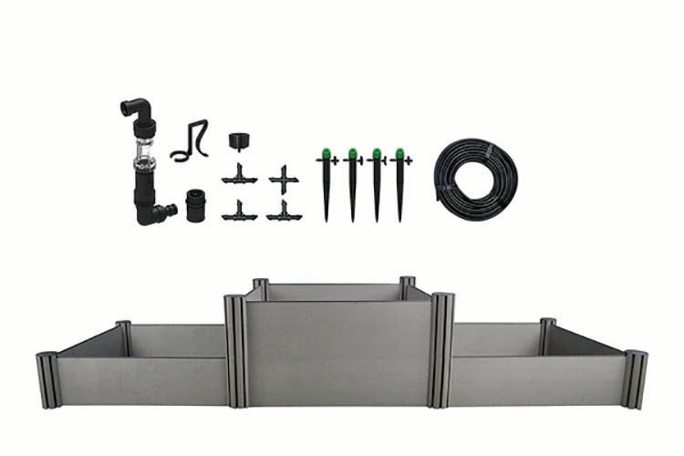 The wall panel is 6" high and very durable, you can stack another bed on top of each other to create a 12"-high garden bed and connect multiple beds together to expand the size. The Watex garden bed is a modular design, & no tooling requires in assembly. Each kit contains a micro-irrigation Tri system for your garden bed.