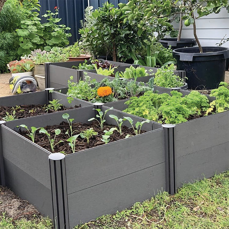 - The garden bed is made from UV-protected wood plastic composite with a simulated wood design. It is low-maintenance, weather-resistant, & will not rot, crack or peel