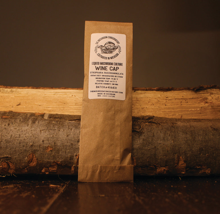 Wine Cap mushrooms (Stropharia rugosoannulata), also known as garden giants, are hardy, flavorful mushrooms that thrive in outdoor beds of wood chips, straw, or garden mulch. This 10ml liquid culture is a concentrated, living mycelium suspended in sterile nutrient solution, ready to start growing your own mushrooms and can be used to start enough spawn to create several Wine Cap beds. Instructions NOT included as this versatile culture can be used in many ways. Once established in a bed, Wine Caps help break down woody material, enrich soil, support plant health, and can produce generous flushes of meaty, burgundy-capped mushrooms season after season under the right conditions.